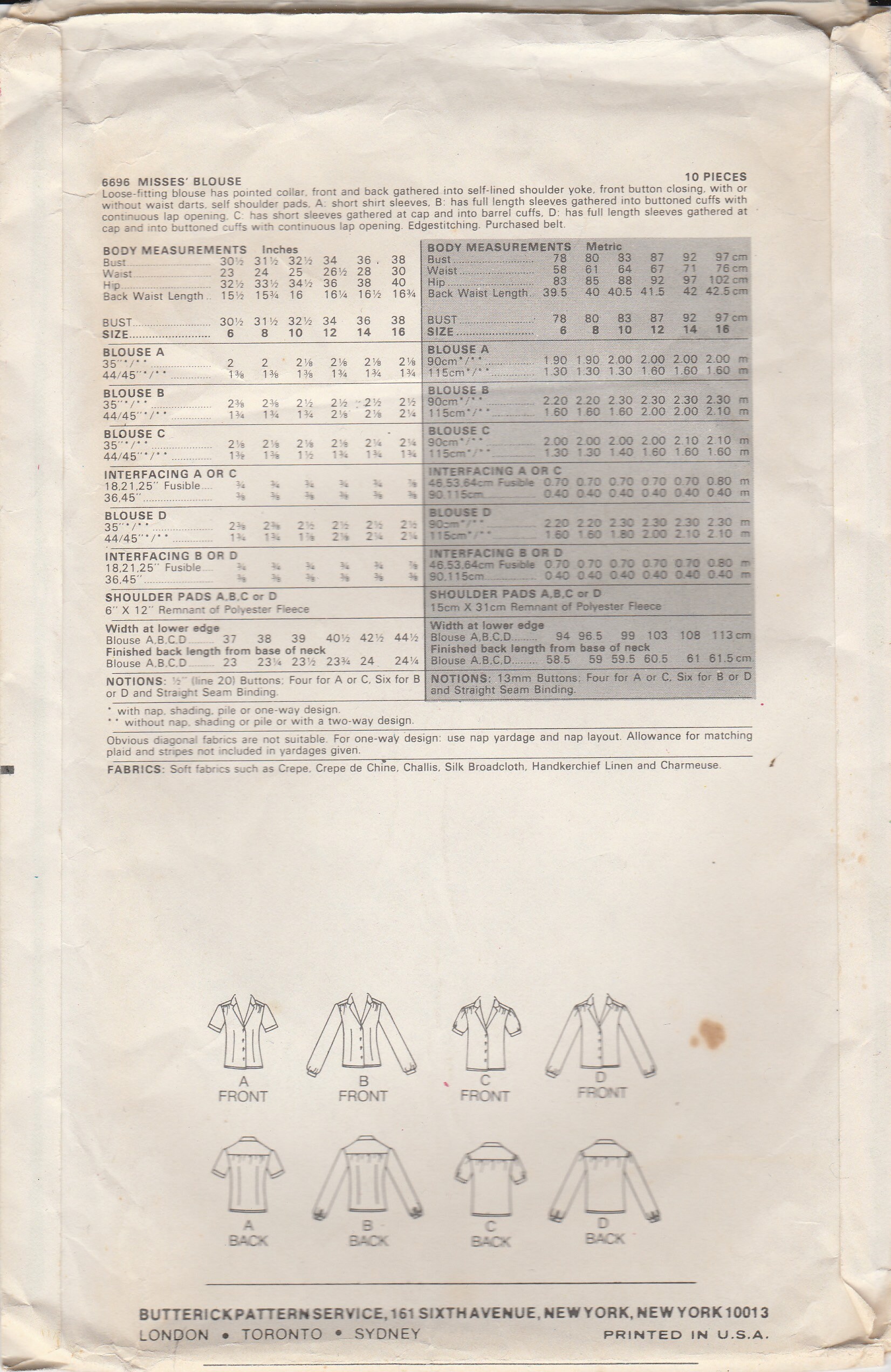 80s Notched Collar Blouse Pattern Butterick 6696 Sizes 6 8 Etsy